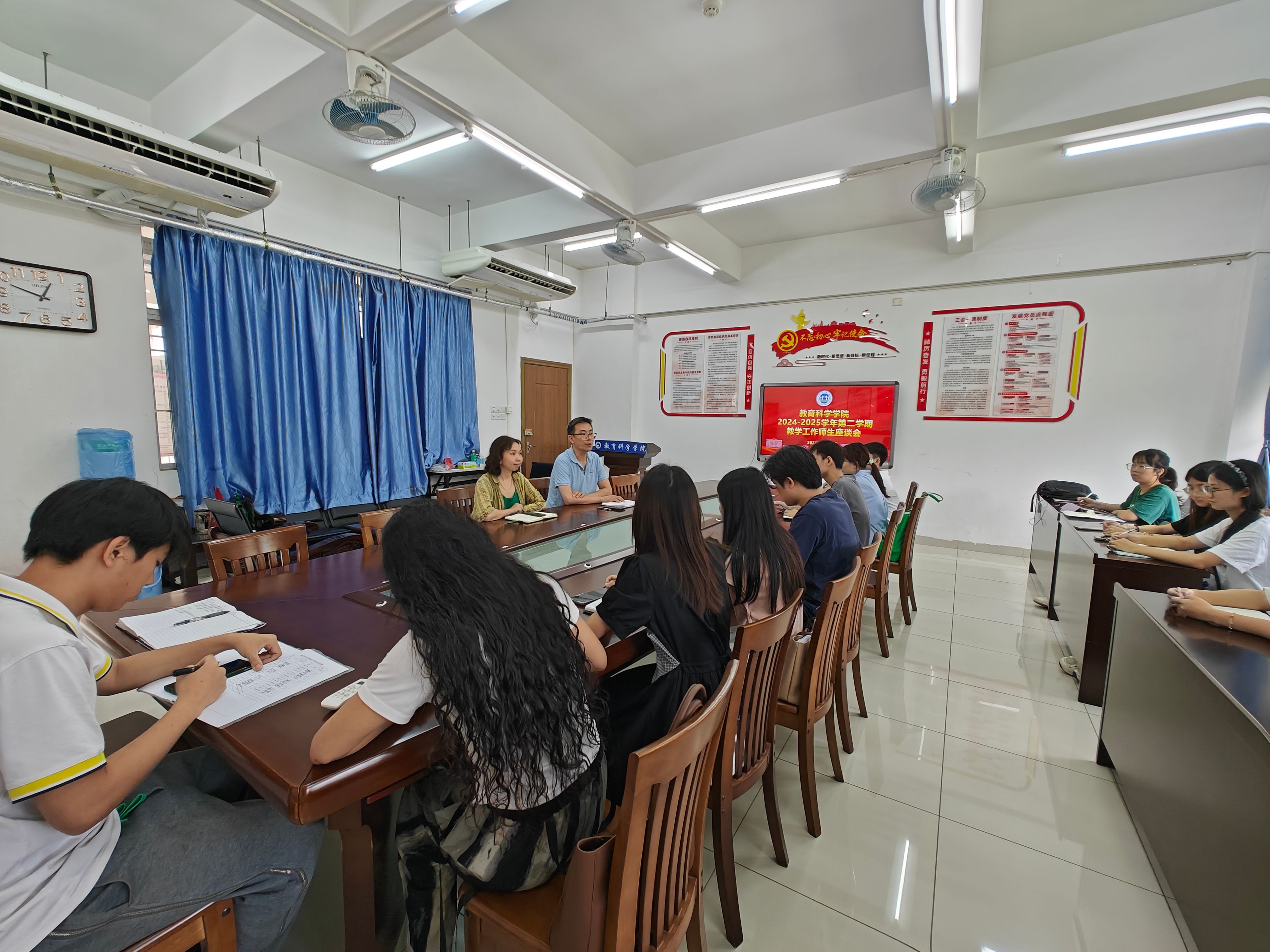 2025年5月28日中午,taptap点点体育期中教学工作师生座谈会在第三教学楼218会议室召开。学院党委副书记何秀华、辅导员夏长洪出席,各年级、各专业学生骨干代表参会。