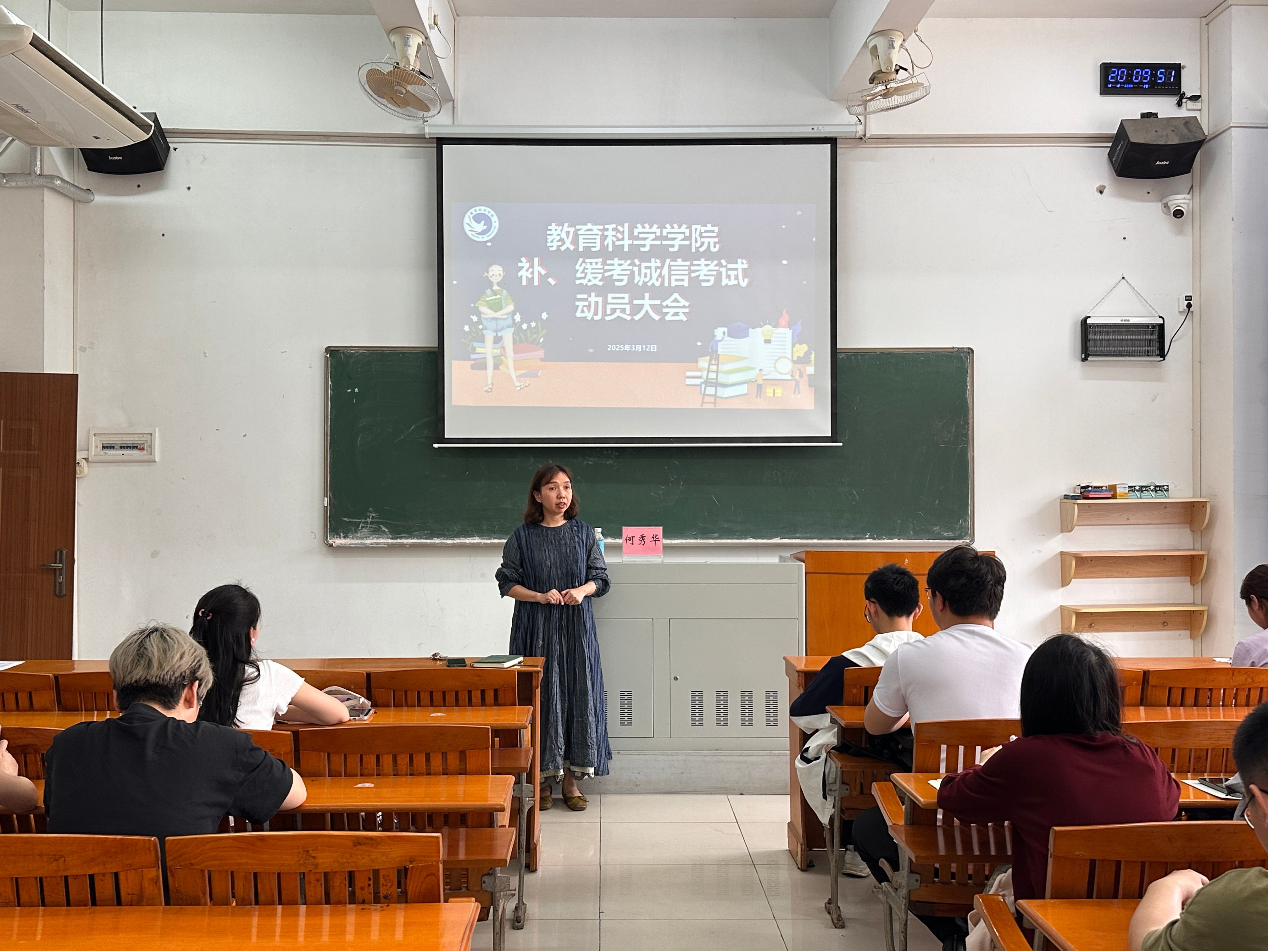 为加强学风建设,严肃考风考纪,2025年3月12日下午16:15分,taptap点点体育于第三教学楼106室召开补考、缓考学生诚信考试动员大会。学院党委副书记何秀华、辅导员夏长洪出席,本次需要补考、缓考的学生参加会议。