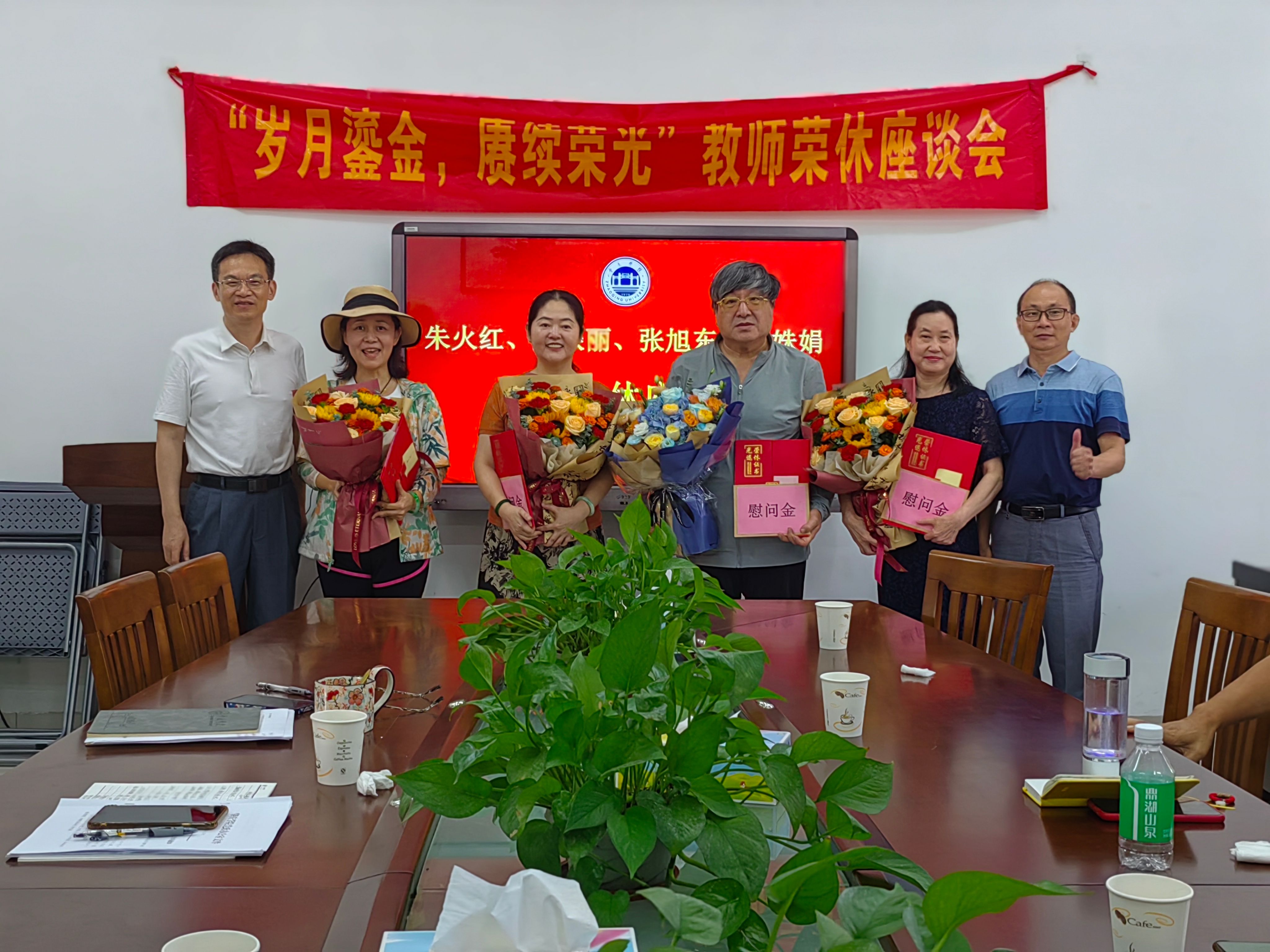 随后,院长文雪为荣休教职工颁发了荣休证书和纪念品,并送上鲜花和祝福。他鼓励荣休教师们继续关心和支持学院的发展,为学院的发展继续贡献智慧和力量。