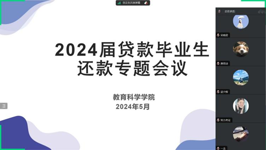 会议最后,陈慧妍老师再次强调按时还款的重要性,同时提出贷款毕业生们如果后续还有疑问可以在2024届贷款毕业生群里进行询问。本次会议为贷款毕业生们提供了清晰、规范的还款指引,为毕业后还贷工作的顺利开展奠定了良好的基础。