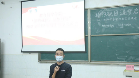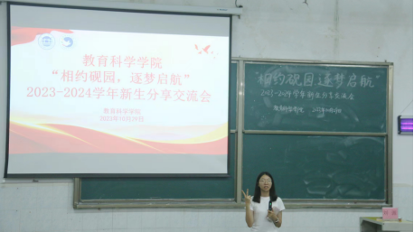 10月29日晚,2023级应用心理学专业、教育技术学专业和小学教育专业共同邀请了优秀学生代表,分别为:2019级小学教育1班莫绮璇、2019级应用心理学1班刘源和2021级应用心理学3班刘淇淇到场分享经验。她们分别就考研、师范生技能培养、如何平衡学生机构工作与学习等方面进行经验分享,并耐心解答新生疑问。2023级辅导员梁少辉老师则围绕礼节礼貌、实习经验、学生机构工作经验三个方面给予学生指导,并对如何制定班级建设方案进行详细讲解。