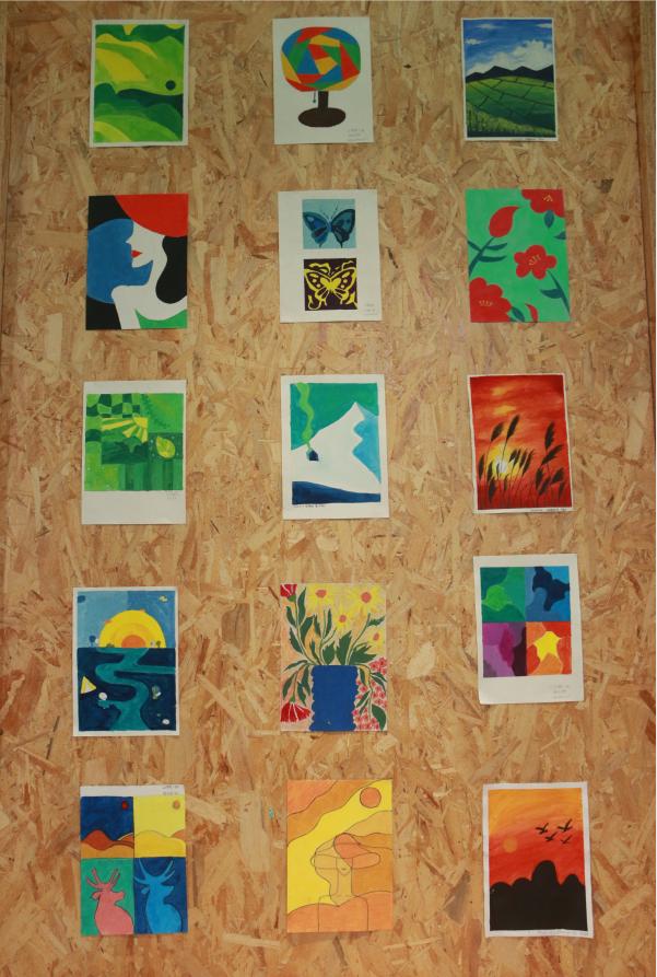 此次美术课程由全国优秀教师、广东省特级教师黄福生授课,在课程上同学们认真学习,互相切磋,积极探讨,在课程结束后举行作业汇报画展,内容分为色彩、国画、木刻版画、剪纸四个部分,经老师和同学一起挑选出200余件优秀作品进行展览。