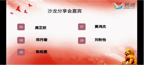 第二期沙龙分享会上,陈熹获得者周芷欣同学分享了由师范生成为一名老师需要必备的一些教师素养,还强调了阅读、写好三笔字和教态的重要性。国励获得者黄鸿杰同学以“保持热爱,砥砺奋进”为主题,希望同学们能够量力而行,保持初心,学会总结,抓住机遇,做事分轻重缓急。国励获得者郑丹璇同学提出在学习、人际关系、缓解压力等方面应保持独立自主和乐观的态度。国励获得者刘秋怡同学提议同学们要学会抓住机会,勇于尝试,挖掘自己的潜能。国励获得者陈昭惠同学表示细节决定成败,最后向同学们献上学业有成、前程似锦的祝福。
