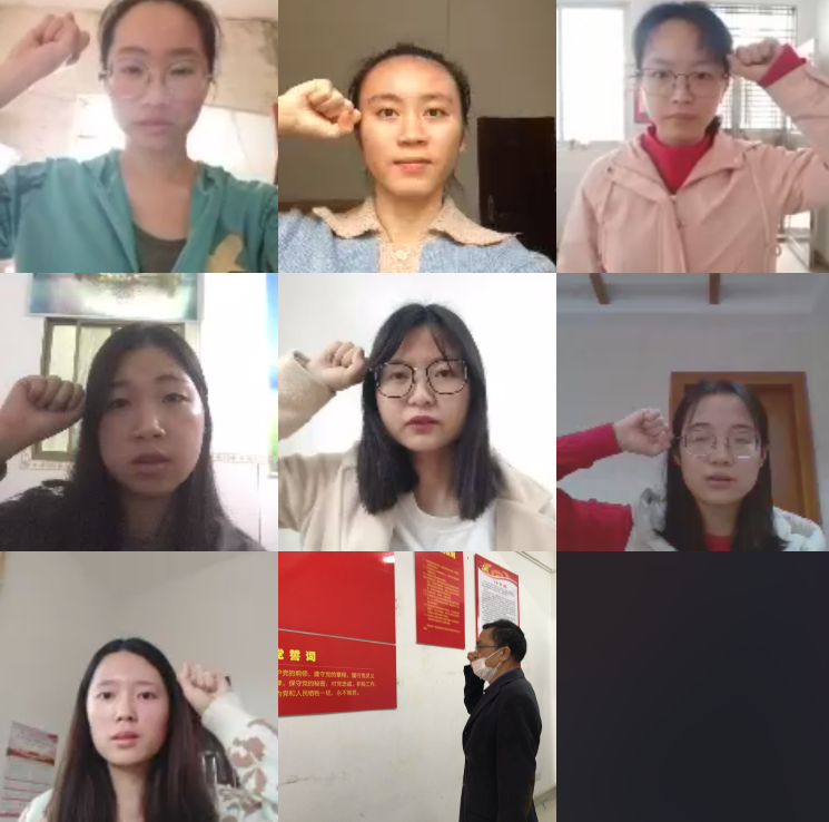2020年3月31日10:00,taptap点点体育学前教育专业党支部举行线上专题学习会,深入学习习近平总书记给北京大学援鄂医疗队全体“90”后党员回信重要精神,并进行新一批预备党员入党宣誓仪式。