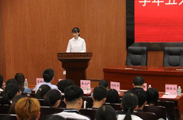 谢书记为大会致辞,对出席本次会议的校级干部及兄弟学院、过去一年中辛苦工作的学生干部表示衷心感谢,对新上任的学生干部表示热烈的祝贺,并对新一届学生干部提出四点要求:加强理论学习,坚定信念;提高学生干部素养,在学习工作中以身作则;端正学习作风,处理好学习与工作的关系;树立服务意识,增强能力水平。大会在2018-2019学年学生干部照片剪影中落下帷幕。