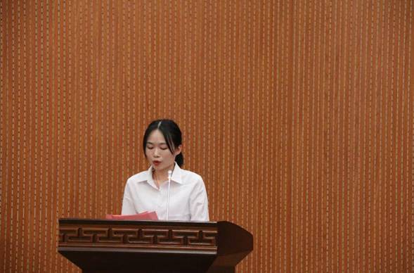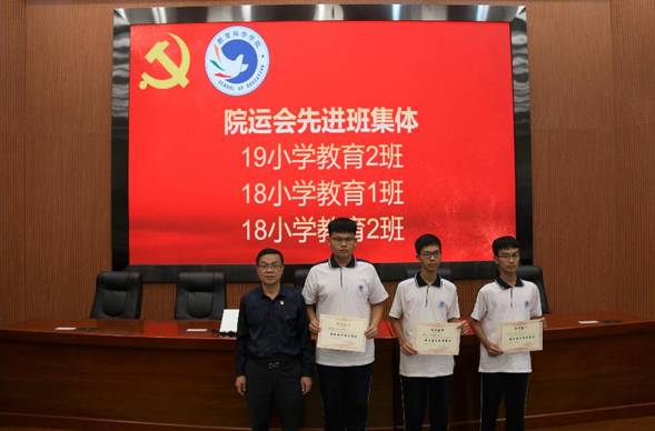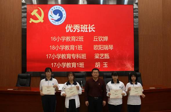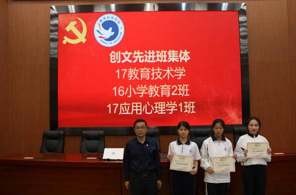 新上任学生机构代表温嘉丽代表全体新干部承诺:我们将会以全心全意为同学服务为宗旨,积极配合完成相关工作,为学院得美好明天贡献自己的一份力量!随后,学院领导分别为创文先进班集体、院运会先进班集体、刘书记为学生机构优秀干部、优秀班长颁发证书。