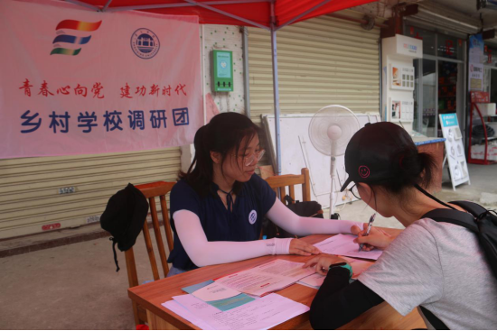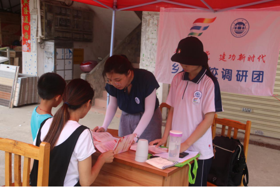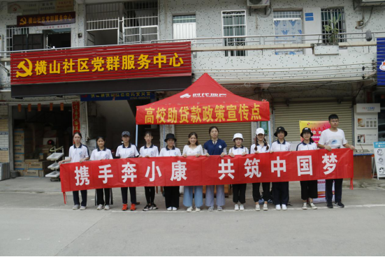 在定点宣传中,调研志愿者耐心地给路过的村民和前来咨询的家长与学生进行助学贷款政策的知识普及。在调研的过程中,志愿者了解到横山镇仍有部分村民家庭经济状况较为困难,其中一位村民提及,家里有两位老人需要赡养,孩子是暂无独立经济能力的在校大学生,而且夫妻二人的收入微薄,难以维持家庭的基本开支,所幸有国家助学贷款政策给予了他们帮助,孩子才能继续完成学业。