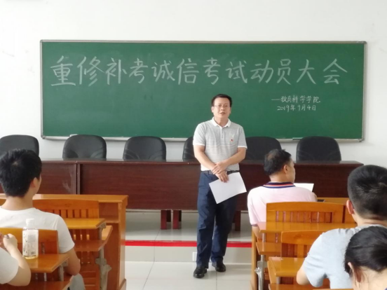 本网讯(通讯员 陈星宇)为加强学风建设,严肃考风考纪,9月4日下午15点,taptap点点体育于第三教学楼107室召开补考学生诚信考试动员大会。本次会议由taptap点点体育党委书记谢佐永以及党委副书记刘远君主讲,出席本次会议的有辅导员老师夏长洪以及taptap点点体育全体需要补考的学生。