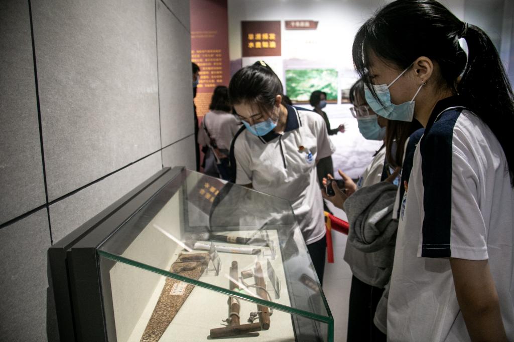 1030,师生一行来到罗定市长岗坡纪念馆。师生们领略着秋收期间渡槽一带的丰收美景,难以想象在半个世纪之前这一带曾经是非旱即涝的穷山恶水之地。沿着纪念馆前行,师生们通过现场观看视频、图片、模型,并实地参观长岗坡渡槽,了解长岗坡渡槽的建设过程以及建设者们的感人故事,感悟到了“为民、担当、实干”的长岗坡精神,以及它所映照的、在新中国建设史上,中国共产党所践行的“担当使命”、“不负人民”等伟大建党精神。