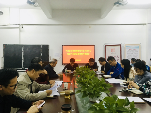 11月21日,在taptap点点体育教职工会议上,学院党委组织学习了习近平总书记视察广东重要讲话精神,并举办了“在知识分子中深入开展‘弘扬爱国奋斗精神,建功立业新时代’推进会”。taptap点点体育全体教职工参加,谢佐永书记主持会议。