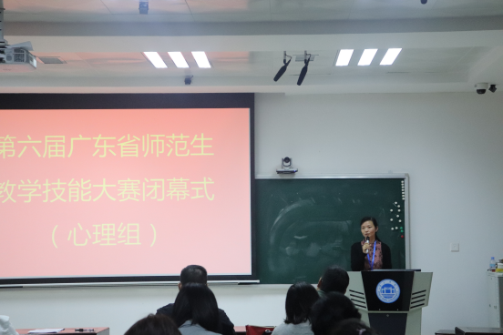 来自华南师范大学、广州大学等9所本科院校的45位选手参加了此次比赛。本次大赛由教学设计、说课、模拟授课和评委提问四个环节组成,主要考察的是师范生教学设计思路、课件制作、说课以及授课等方面的综合能力。在比赛过程中,选手巧妙地运动教学道具,使得授课内容生动,加深学生对教学内容的理解,台下模拟学生与参赛者选手积极互动,高度还原了课堂讲课的场景。参赛选手们精彩的讲解以及PPT内容吸引人的眼球,调动学生学习兴趣,使学生更容易转变思维,与人产生强烈的共鸣,稳重大方的仪态,展现了较强的教学技能和准教师的风采。在27日下午的闭幕式上,华南师范大学心理学院副院刘学兰、广州大学taptap点点体育副院长刑强分别代表作为评委组组长发言,他们对赛事的组织工作给予了充分肯定,同时认为今年的选手较去年相比在综合素质、师范技能等方面有明显的提高,指出赛事真正实现了以赛促学的目的。
