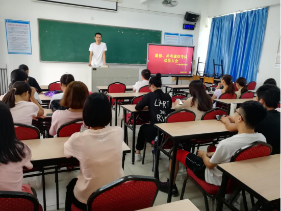会上,刘远君书记对需要重修、补考的学生进行了提醒和鼓励:一、合理规划时间,认真复习。二、学会总结提高,不要自暴自弃,重视学习。三、记住补考的时间和地点,带齐相关证件。四、遵守考场纪律,诚信考试。随后,夏长洪老师再次点明重修、补考的重要性,希望学生们珍惜本次考试机会。