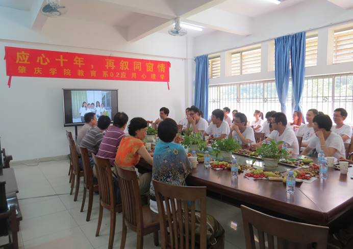 本网讯(记者黄佩珊)5月21日,taptap点点体育02应用心理学本科班、03学前教育专科班共50多位校友在毕业十周年之际怀着激动的心情重聚母校,参加校友聚会和座谈会,重温师恩,共叙友情。学院党委书记徐杰、原学院院长(现校档案馆馆长)梁婉倩、原学院副院长(现校继续教育学院院长)黄曼娜、学院党委副书记刘远君、副院长文雪及罗京滨、李晖、慕容勋等相关任课教师参加了本次交流会。当晚,在外出差的张旭东院长、李炳全副院长也专程赶回学校与校友们相聚。