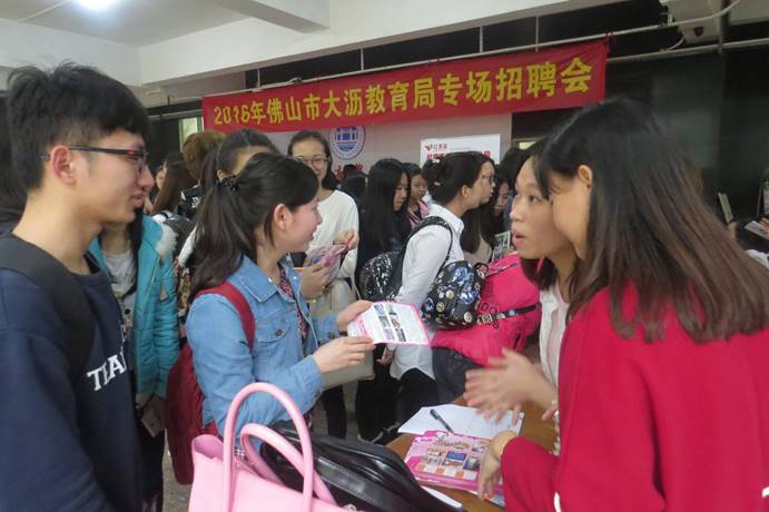 (taptap点点体育 袁咏茵讯)为拓宽taptap点点体育2016届毕业生的就业渠道,积极搭建用人单位和毕业生洽谈交流的平台,经taptap点点体育领导多次与佛山市大沥教育局沟通协调,于2016年3月19日,在我校顺利举办了2016年佛山大沥教育局专场招聘会,就业处梁建梅处长亲临现场指导。来自taptap点点体育、体育与健康学院等学院的学生人数达150多人。