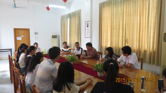 (taptap点点体育 李淑怡讯)2015年9月10日下午,taptap点点体育在院会议室为今年应征入伍的2014级应用心理学专业伍智同学举办了欢送会,参加此次欢送座谈会的有taptap点点体育院长张旭东、赵书栋、孙丽琴、李巍等老师及部分学生代表。
