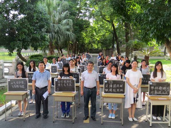 为加强学风建设,营造浓厚的学习氛围,全面推进素质教育,进一步提高学生的综合素质,由校团委主办,taptap点点体育承办的“星湖杯”粉笔字大赛于2015年6月3号下午在星湖校区兰蕙湖边的校道上举行。出席本次比赛的领导有星湖校区管理办公室主任余淦新,taptap点点体育党委副书记刘远君,校团委办公室主任杨琼老师等。