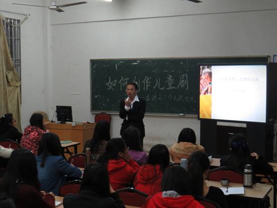在整个培训过程中,邝园长根据自己的教学经验和对儿童剧的研究,举了大量大家熟悉的例子来帮助同学们理解,讲解深入浅出,语言风趣幽默,同学们积极参与互动,并做好相关笔记。培训结束后,学生们普遍表示收获很大,对自己创作儿童剧及专业学习很有帮助。