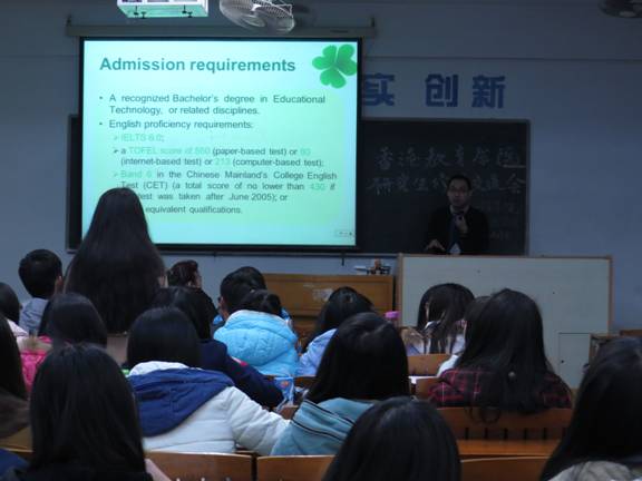 在讲座的后半部分,郑博士和在场的同学们一起讨论了一些关于考研以及就业等各面的问题,并特别针对内地学生如何在香港教育学院就读研究生和如何在香港地区寻找机遇等方面做了详细的交流,现场气氛十分融洽。马玉桦老师还帮同学们向郑博士询问了香港教育学院学费、奖学金设置以及各项惠生政策等情况,郑博士一一作出了解答。在讲座的最后,郑博士真诚欢迎有意愿报考该院研究生的同学们来香港学习,并为同学们的学习生活献上祝福。本次讲座在同学们热烈的掌声中圆满结束。