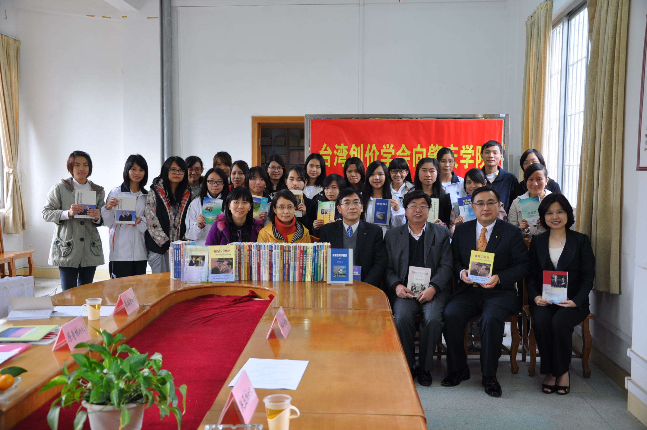 2012年12月12日,台湾创价学会文教处处长洪玉柱一行到访我校,并代表台湾创价学会向我校池田大作研究所赠送一批最新出版的池田大作书籍。池田大作研究所名誉所长、教育学院院长胡海建,池田大作研究所所长、教育学院副院长原青林代表我校接受了捐赠。 赠书仪式在教育学院会议室进行,胡海建院长和洪玉柱处长代表双方作了致辞,原青林所长主持了此次赠书仪式。