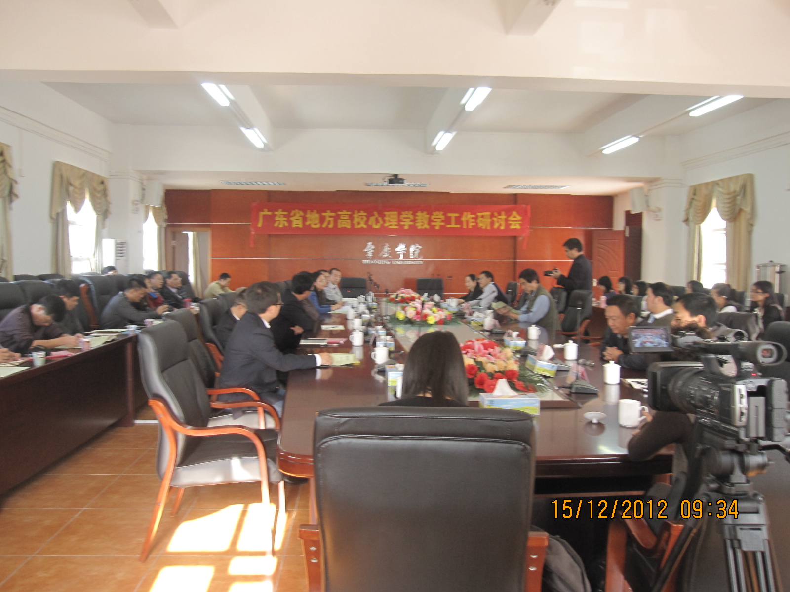 (黄春香讯)2012年12月15日,广东省地方高校心理学教学工作研讨会在我校西江历史文化研究院顺利召开。出席本次研讨会的有:我校曾桓松副校长,中国心理学会副理事长、广州大学教育学院院长博士生导师叶浩生教授,华南师范大学心理与行为科学部常务副部长、博士生导师郑希付教授等,以及我省各地方高校的心理学专家学者,教育学院院长胡海建教授及部分教师代表。