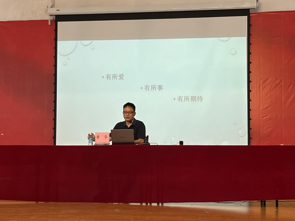 9月9日上午,副院长黄华以“大学适应与心理健康”为主题,为新生带来一场温暖而富有启发性的讲座。他引导同学们思考“何为心理健康”,并通过贴近生活的案例和互动,帮助大家从身体到心理全面认识自我。黄华副院长还融入了真实成长故事,增强学生的代入感,鼓励大家在大学生活中“有所爱、有所事、有所期待”,积极面对挑战,守护身心健康。