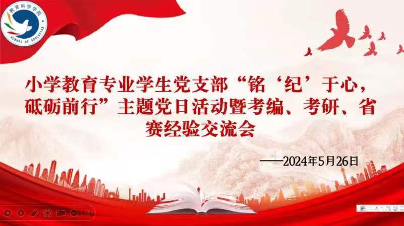 党纪学习教育:小教党支部“铭‘纪'于心,砥砺前行”主题党日活动暨考研、考编、省赛经验交流会