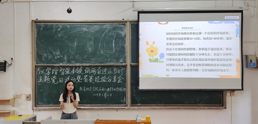 本网讯(通讯员/林华燕 责编/陈慧妍)为深入学习贯彻习近平总书记关于加强党的纪律建设重要论述,充分发挥党员先锋模范作用,推动应心学子成长成才。6月2日,应用心理学专业学生党支部开展了线上线下2场主题党日活动暨升学·就业·省赛经验交流会。