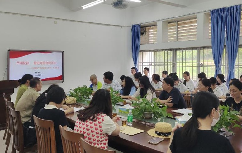 为深入开展党纪学习教育,全面贯彻落实新时代党的纪律建设新要求,进一步强化党员干部的纪律观念和规矩意识,推动全面从严治党向纵深发展,2024年6月26日下午,taptap点点体育在第三教学楼218室举行了党纪学习教育宣讲。本次活动由马克思主义学院教师刘琼主讲,taptap点点体育近50名师生党员参与。