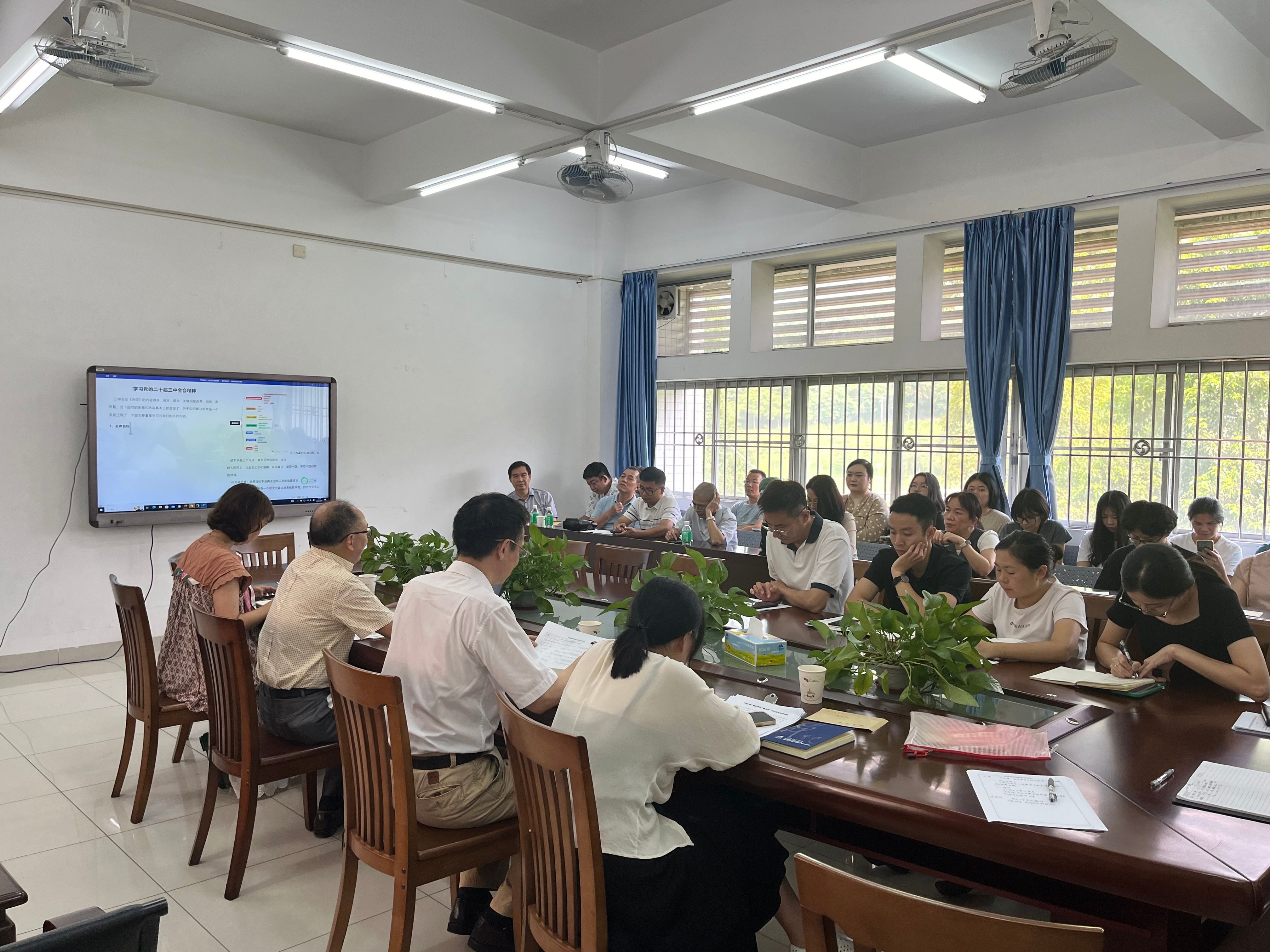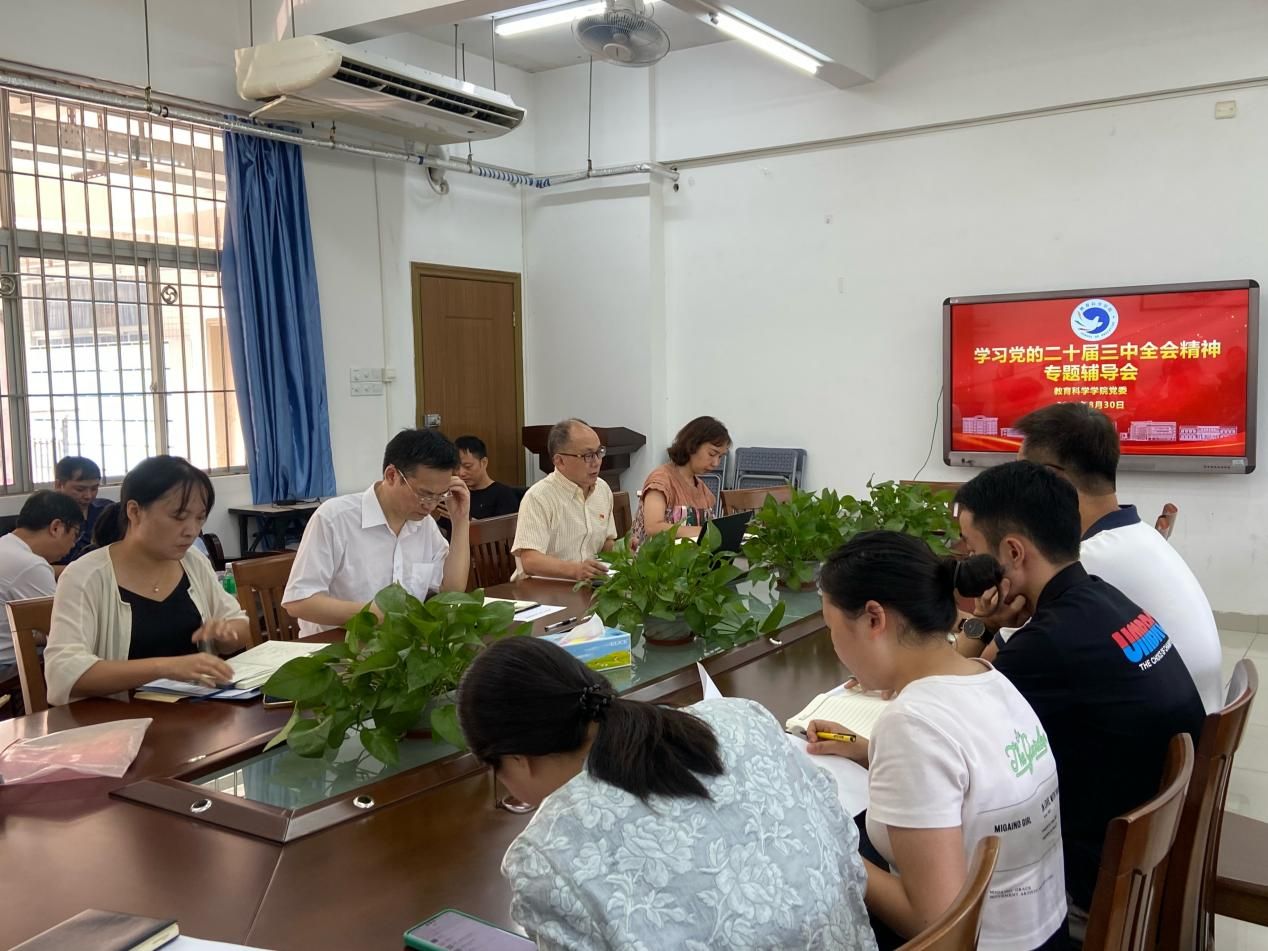 8月29日,taptap点点体育在第三教学楼218会议室召开学习党的二十届三中全会精神专题辅导会。党委书记蔡振治同志主持并领学,全体教师积极参与此次会议。
