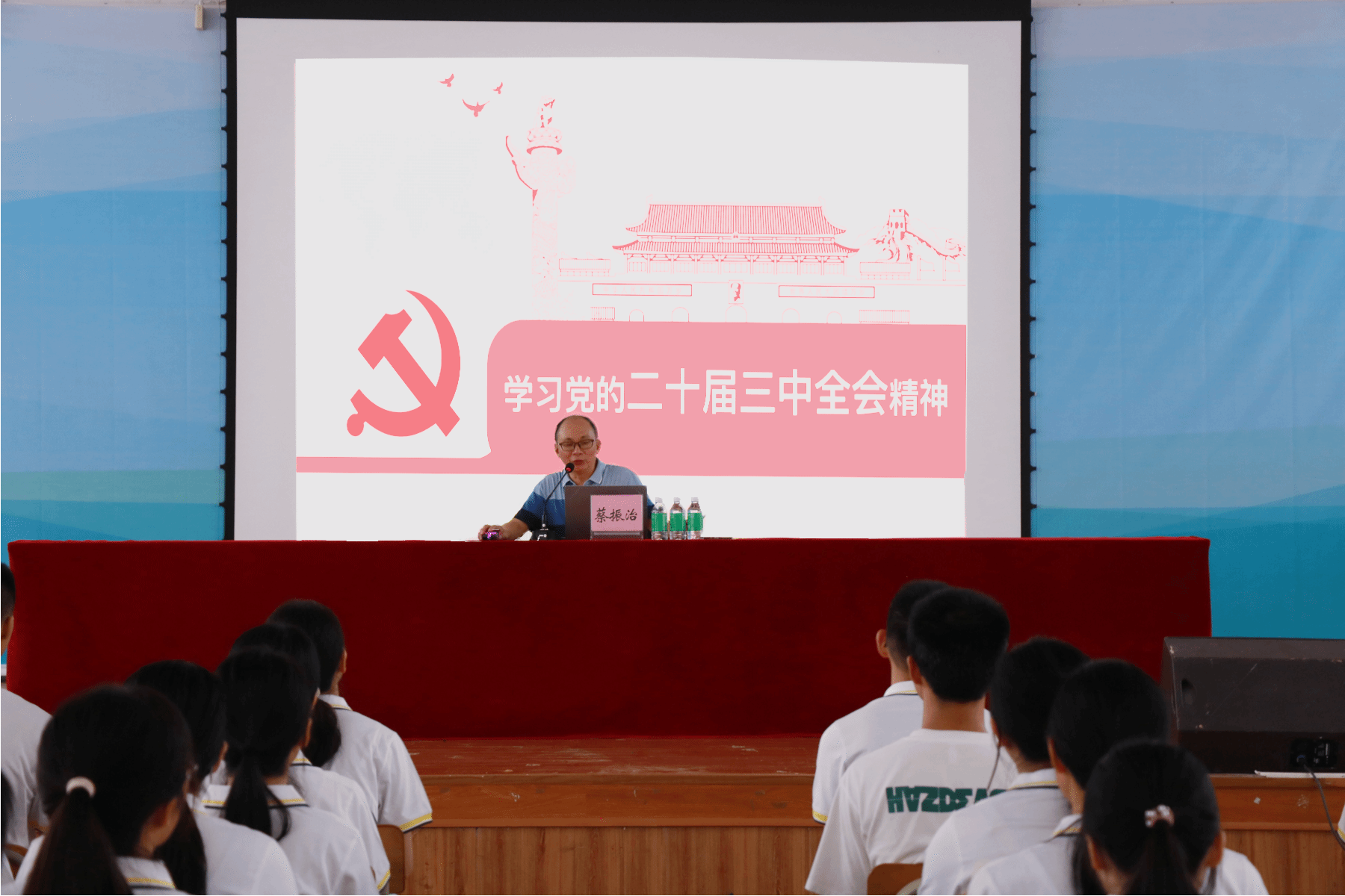 蔡书记带领学子们学习了党的二十届三中全会决定的主要内容,详细解读了会议提出的各项政策和战略部署,重点介绍了与教育与人才息息相关的高质量发展、全面创新等体制机制改革的内容。他强调,党的二十届三中全会是在中国式现代化全面推进强国建设和民族复兴的关键时期召开的一次重要会议。对于青年学子来说,深入学习和理解这些精神,把自身前途命运同国家民族前途命运紧紧联系在一起,才能在大学四年中自觉肩负起自身使命,才能在求学道路上走得更远更好。