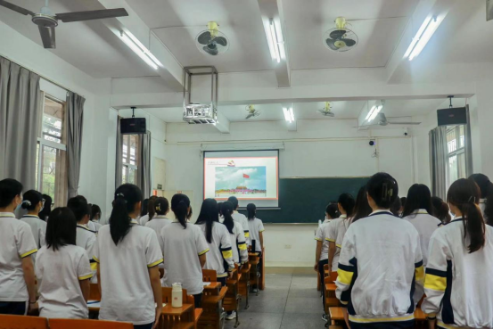 结尾时,雷瑞虹和大家再次观看了庄严神圣的升旗仪式,并引用习近平总书记的话,勉励同学们在今后的学习生活上严格要求自己,用脚步丈量祖国大地,用耳朵倾听人民的呼声,用内心感应时代的脉搏,争取早日入党!