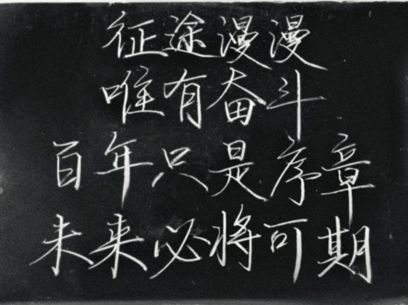 本次活动沿袭了律委会举办多年“三言两语书真情”活动,但不同于以往明信片、小纸条、朋友圈留言等形式,今年taptap点点体育确定了以写黑板字拍照上传的形式进行。既结合了师范生粉笔字日常练习的特点,作为载体的小黑板也为“三言两语”书写的布局和整体结构提出了潜在的要求。本次活动得到同学们的积极响应,共收集到作品94份。内容包括了学习党史后的感悟、对榜样的景仰、对青春的起誓、对时代的承诺等,苍劲有力的字体,整洁舒适的排版,缤纷灿烂的点缀,磅礴大气的誓词,让人感受到文字与书写的力量。