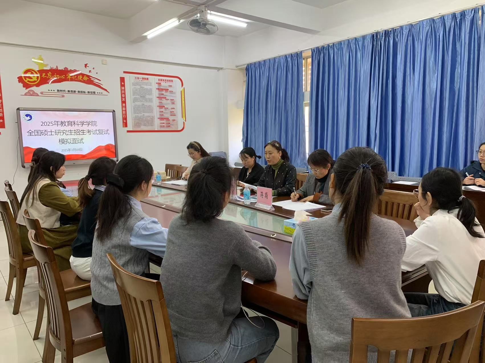 为全面提升考研学子复试竞争力,taptap点点体育于3月19日组织开展2025年全国硕士研究生招生考试复试模拟面试。学院副院长曾苗苗、学前教育系李晖教授、小学教育系蒋菊副教授、应用心理学系周彩虹副教授等专家组成面试团队,为考研学子提供专业指导。