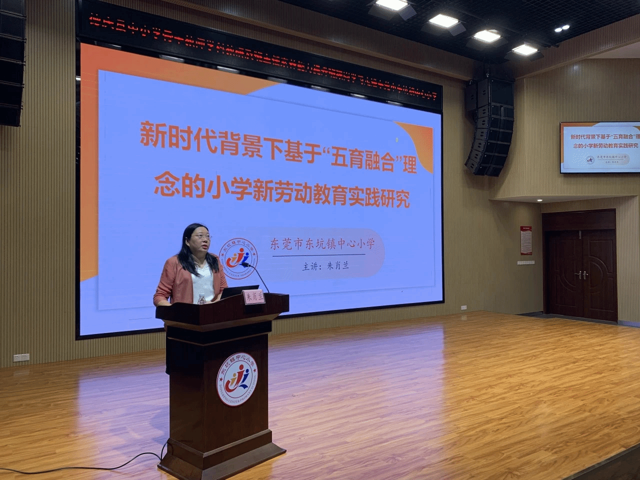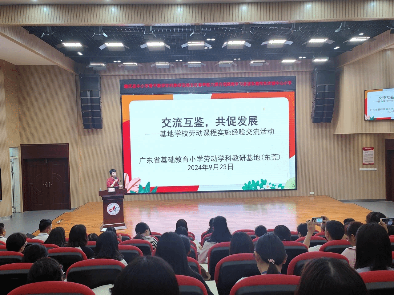 随后,朱肖兰校长以《新时代背景下基于“五育融合”理念的小学生劳动教育实践研究》为主题的讲座,分享基于五育融合理念的劳动教育实践经验,尤其是近年来在劳动教育方面的进展与成绩。学校自2009年开展综合实践活动,重点发展五个方面:师资培养、课程育人、实践育人、评价育人和辐射推广。结合地方特色,开展农业种植、家务劳动、校园卫生等活动,形成了五育融合的劳动教育模式。家长的积极参与,全面提升学生的生活能力、合作精神和创新力,为学生的全面发展提供支持。接着,江润荷老师分享《基于核心素养的劳动教育实践探讨》,她介绍东莞市劳动教育的发展,尤其是东坑中心小学在朱校长带领下的东坑中心小学,通过不断完善劳动课程内容、教学模式和评价体系,形成了具有特色的劳动教育模式,并鼓励大家从不同的角度理解劳动教育,在实际教学中进行创新与实践。最后,叶凤华老师介绍关于劳动教育在小学阶段的实施与设计。根据低、中、高年段的特点,设计了不同的劳动任务。比如,低年段侧重日常卫生与整理,生产劳动如种植蔬菜;中年段增加了烹饪、清洁电器、垃圾分类等任务;高年段则包括更复杂的任务如农产品推销、美食制作、公益劳动等。她还介绍如何设计不同学段学生家庭劳动评价表,要结合家长的参与进行定期检查。最后,为确保活动的顺利进行需要有完善的机制保障,包括活动经费、场地等方面的支持。