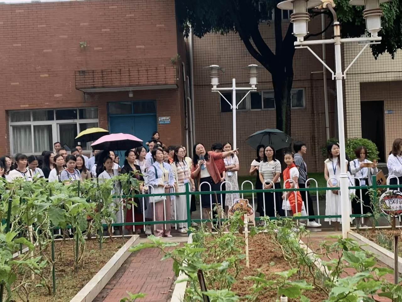 师生们参观了东坑中心小学的校园,感受浓厚的文化氛围和先进的教学设施。其中,校园内的“开心小农场”引起了大家的浓厚兴趣,它体现美术、科学等学科的有机融合,展示学校在“五育融合”理念下的创新实践。