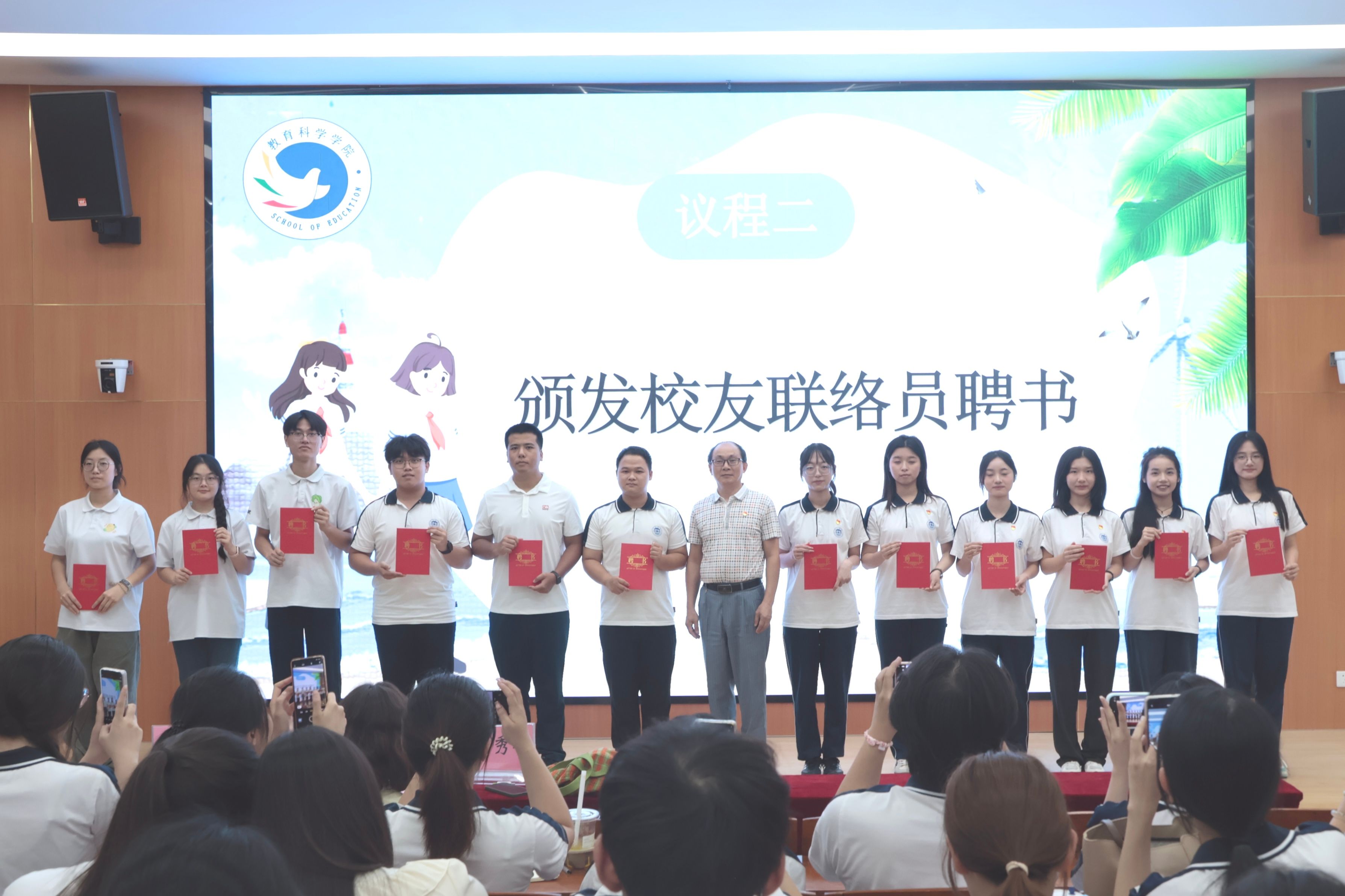 为搭建校友与母校沟通的坚实桥梁,蔡振治书记现场为12名校友联络员颁发聘书。随后,他带领全体党员师生重温入党誓词,勉励党员同志无论身处何方,都要铭记誓言,永葆先进本色,在各自岗位上砥砺奋进。在寄语环节,蔡书记紧扣“三个认识”勉励毕业生:一要认识新时代,把握“百年未有之大变局”下的机遇,牢记科教兴国使命;二要认识教育本质,坚持为党育人、为国育才,适应教育数字化浪潮;三要认识自我价值,践行“厚德、明智、博学、力行”校训,勇担社会责任。他特别强调,作为师范生,须始终坚守立德树人初心,致力培养具有高阶思维的时代新人。