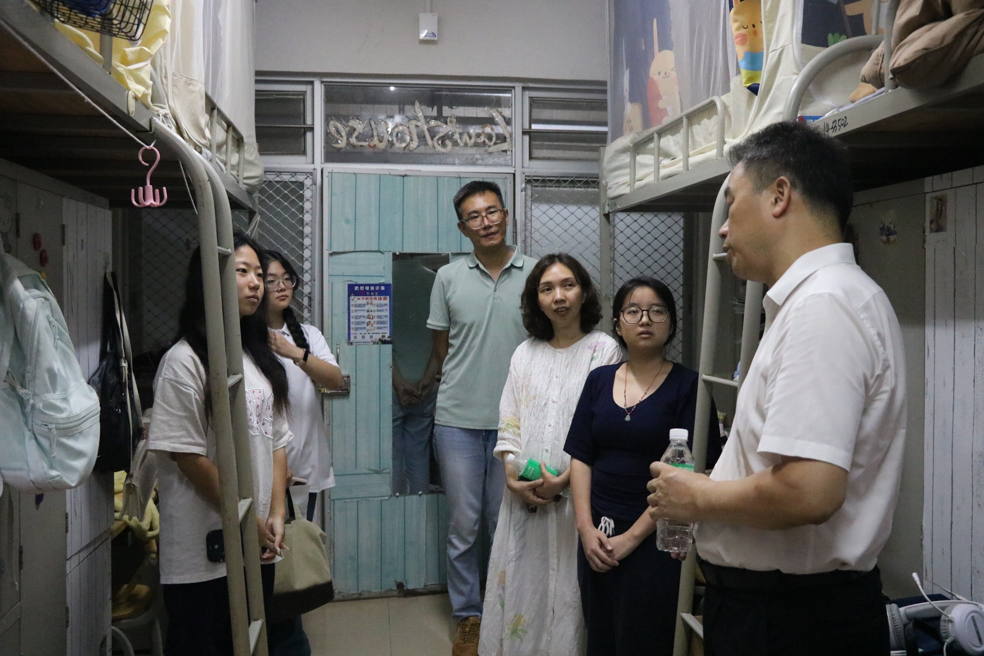 2025年7月2日晚,由副校长肖起清带队,taptap点点体育负责人、辅导员一行深入学生宿舍,开展走访慰问工作。期间,校领导与同学们亲切交流,深入了解其学习生活状况,在融洽氛围中传递关怀与鼓励,为同学们送去温暖与力量。