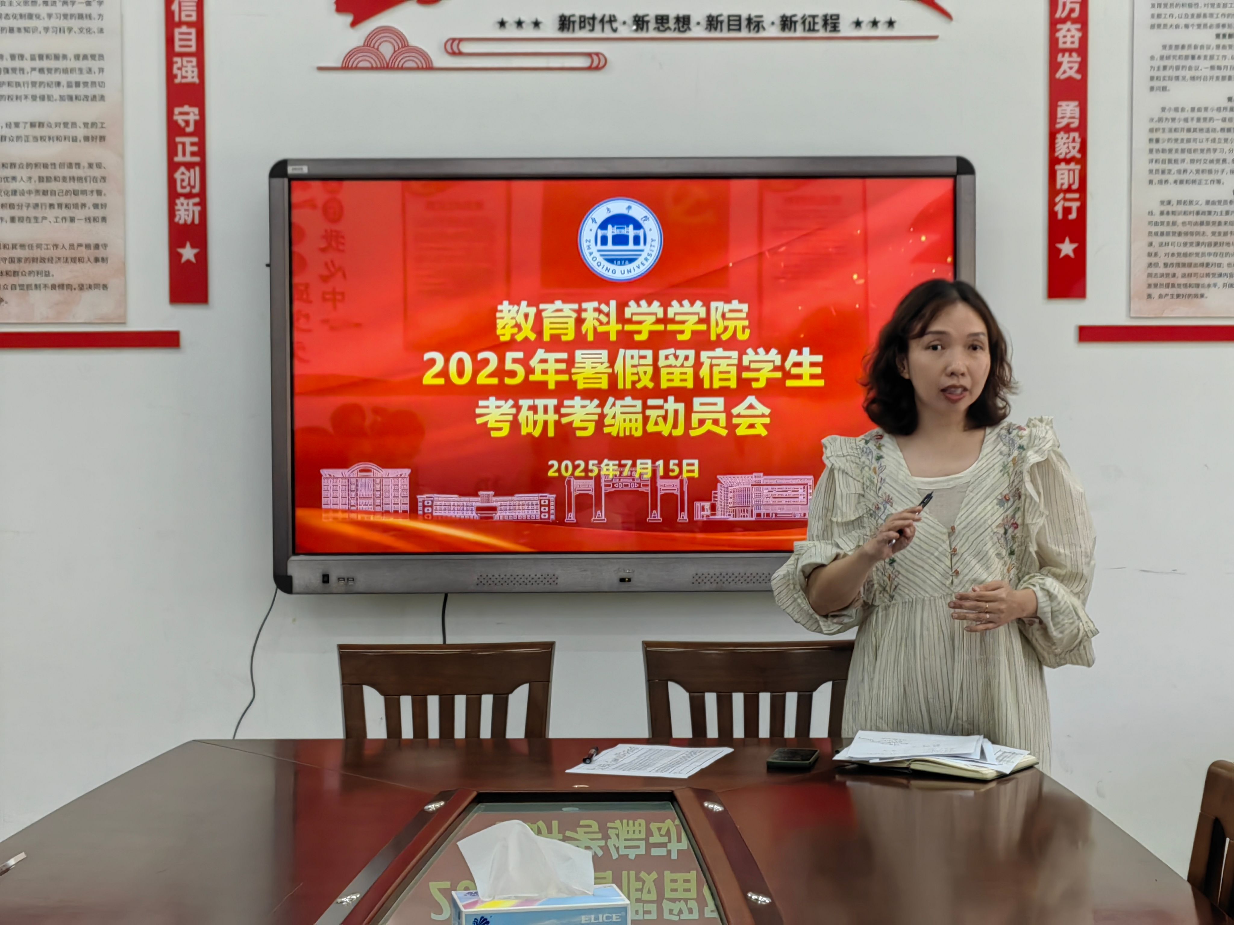 7月15日下午,taptap点点体育在第三教学楼218会议室召开2025年暑假留宿学生考研、考编动员会。党委副书记何秀华、副院长黄华,辅导员雷瑞虹出席,考研、考编暑假留宿的学生参会。