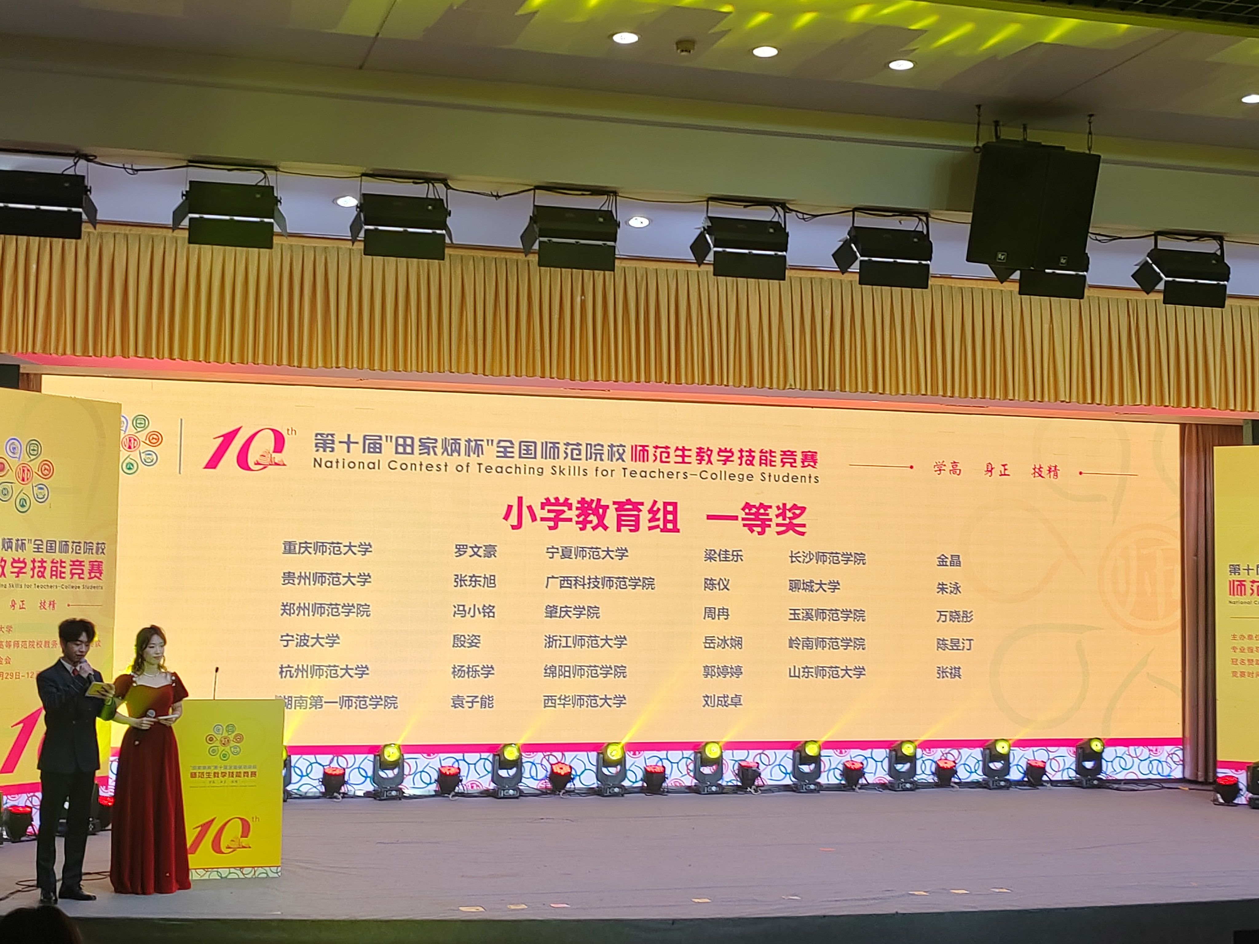 11月29日至12月1日,第十届”田家炳杯“全国师范院校师范生教学技能竞赛决赛在浙江师范大学举行。taptap点点体育2021级小学教育5班周冉同学从众多参赛选手中脱颖而出,荣获一等奖,实现了taptap点点体育在国家级师范院校师范生教学技能竞赛成绩的新突破。