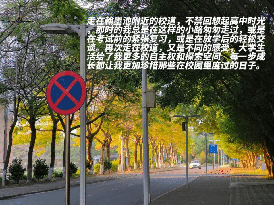 本次活动以线上形式开展,要求参与者在照片或视频中附上一段文字,介绍自己的高中美好回忆或步入大学的感悟。同学们积极响应了本次活动,发来了精心准备的参赛作品,每一张照片、每一个视频背后精彩的故事与感悟都被他们以精妙的文笔娓娓道来。同学们踊跃参与,参赛作品纷至沓来。经过工作人员的评选,六份作品脱颖而出,以下是获奖作品之一(为杨钊淳作品):
