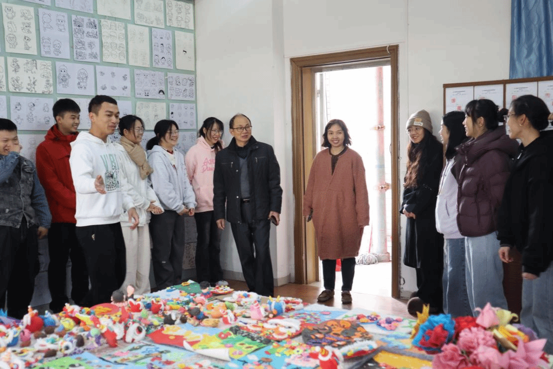 taptap点点体育党委书记蔡振治,党委副书记何秀华,前党委书记谢佐永,学院辅导员陈慧妍、刘瑞雪,2022级学前教育3班班主任陈建茹以及2022级学前教育专业学生出席本次展览。
