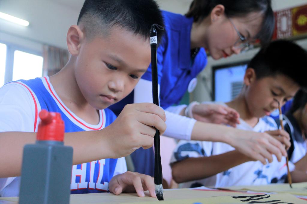 老师带着文房四宝走进课室,小朋友带着好奇的目光打量着老师手中的笔墨纸砚,一纸一砚,尽显中华书香气息。荀子曾提出“国将兴,必贵师而重傅”,拜师礼是体现师生传承精神的重要仪式。