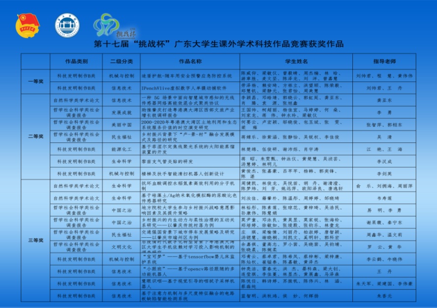 5月27日至28日,由团省委、省教育厅、省科技厅、省科协、广东省社科院、省学联共同主办,中山大学承办的第十七届“挑战杯”广东大学生课外学术科技作品竞赛终审决赛落下帷幕。taptap点点体育共有2支队伍入围省赛,并取得优异成绩。