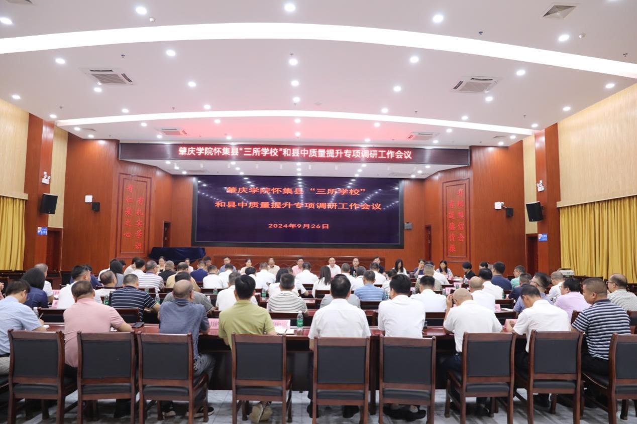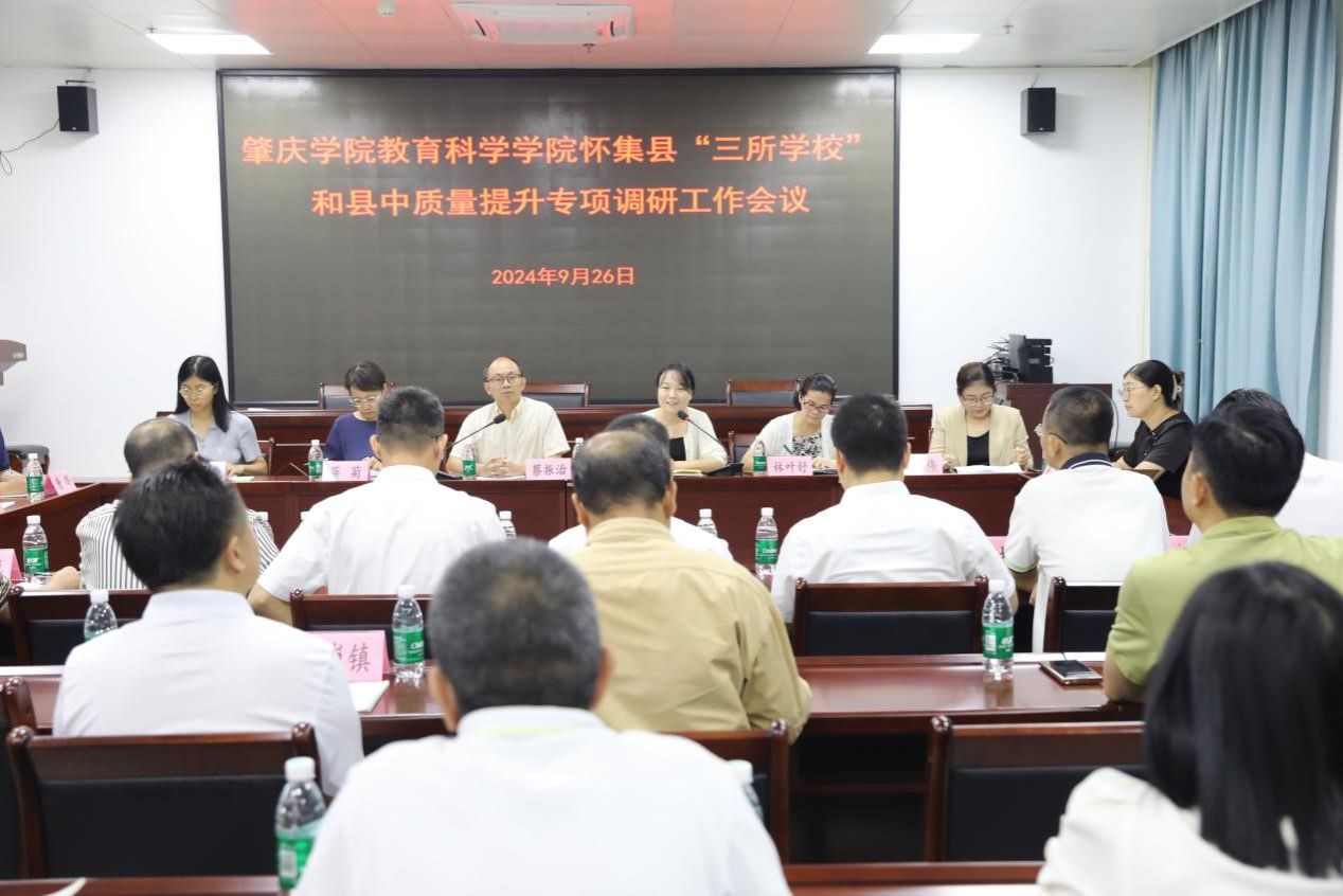 2024年9月26日,taptap点点体育领导与文学与传媒学院领导、教授与专家一行18人到怀集开展“三所学校”和县中质量提升专项调研工作。怀集县教育局副局长石棣飞、县教师发展中心主任、19个乡镇(街道)分管教育领导,县教育局相关股室负责人,各公办高中校长,乡镇中学、中心小学(学校)校长共80多人参加调研会。